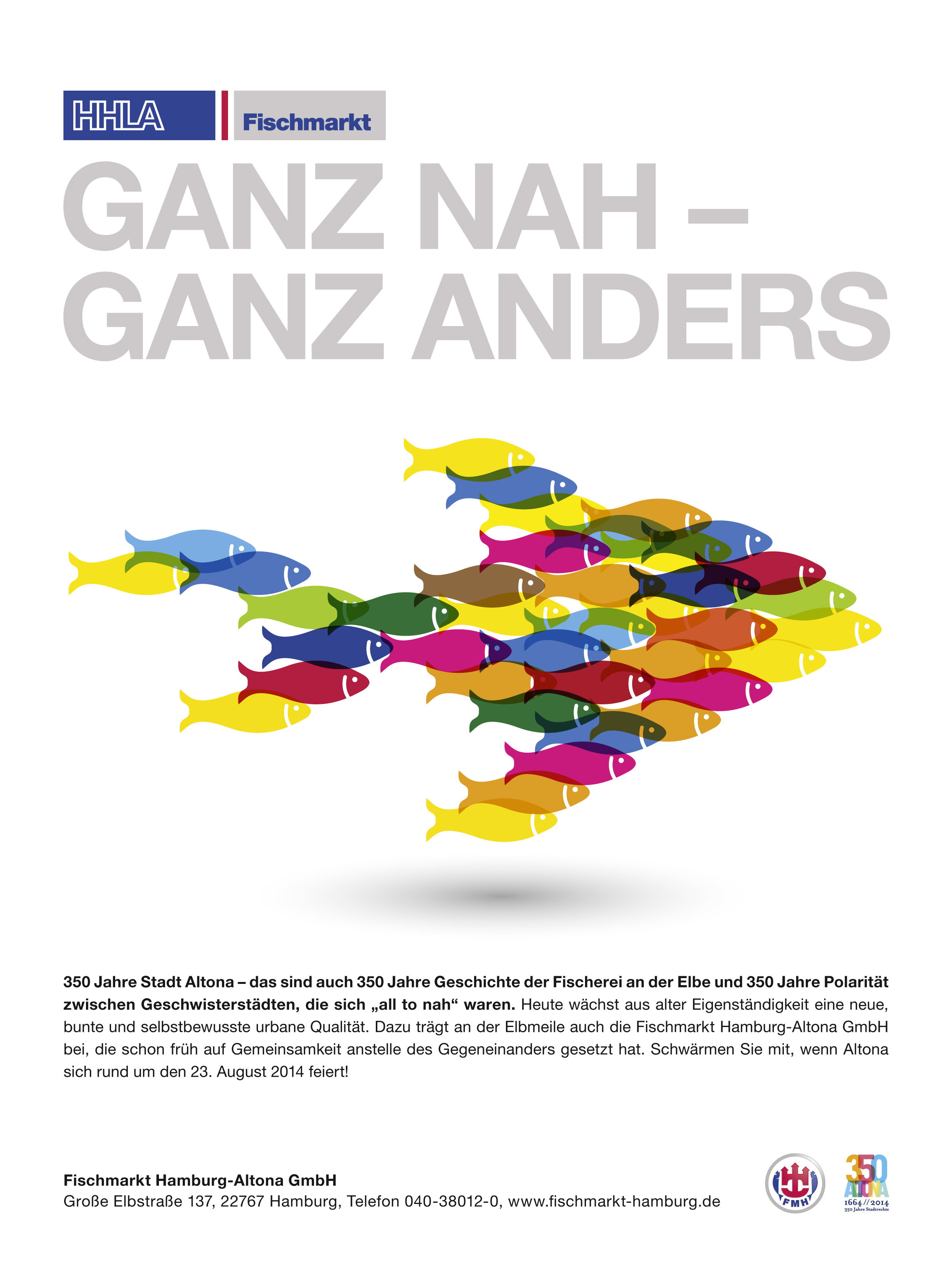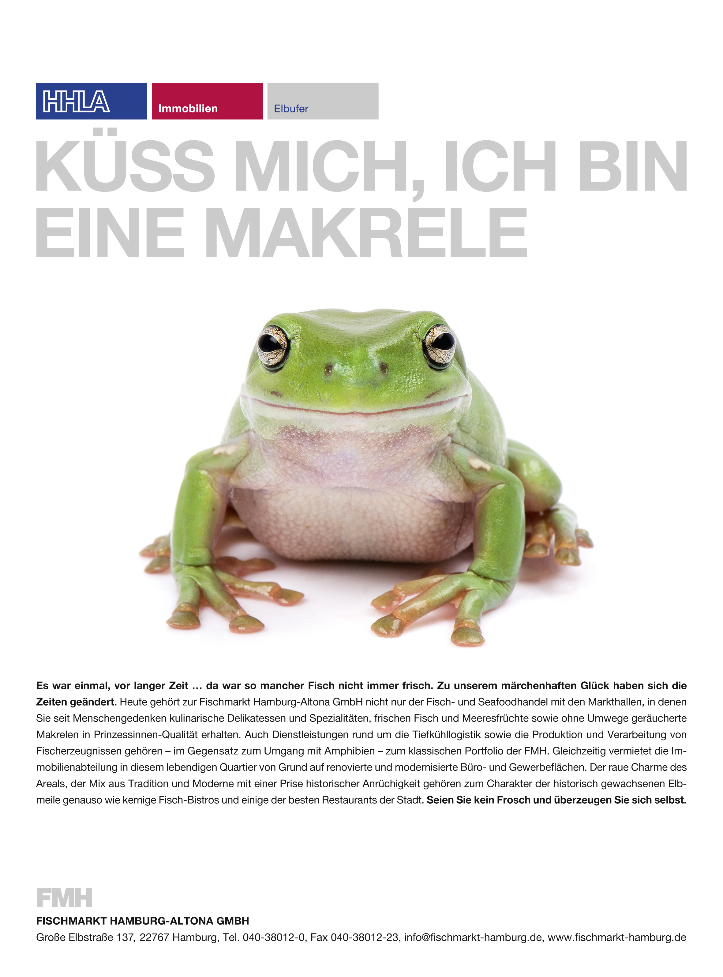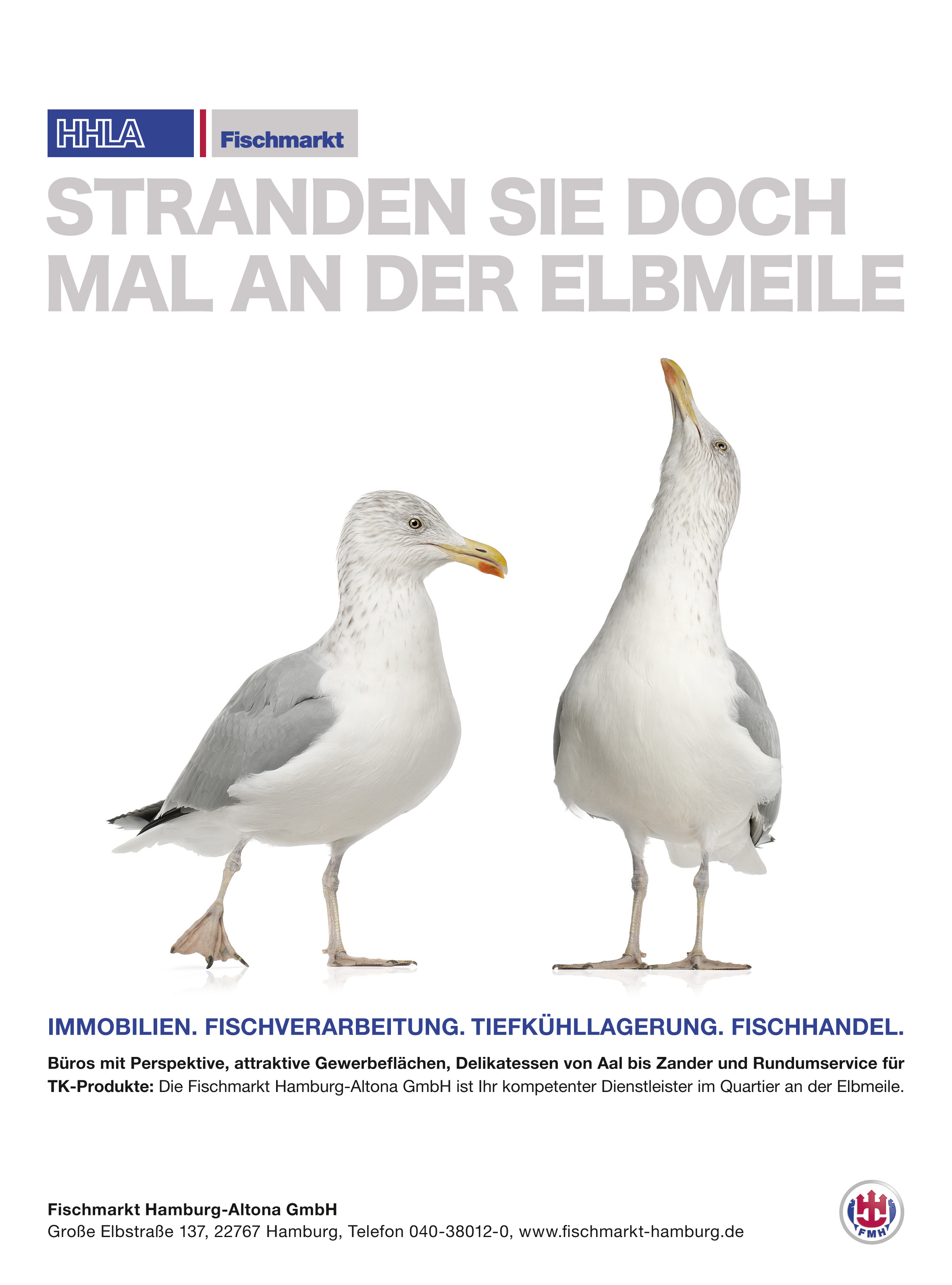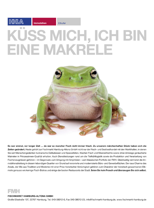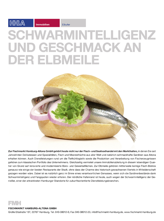 Unsere Broschüren und Medien bieten einen Überblick über die Aktivitäten unserer Geschäftsfelder Vermietung, Fischverarbeitung, Tiefkühllogistik und Fischhandel. Die Anzeigenmotive illustrieren zudem den zielgruppenorientierten und ortsbezogenen Umgang mit relevanten Unternehmensaufgaben.